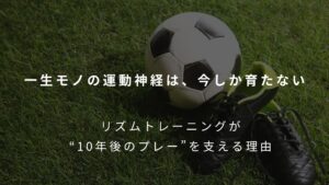 〜リズムトレーニングが“10年先のプレー”を支える理由〜 「運動神経は生まれつき決まっている」そう思われがちですが、実はこれは大きな誤解です。 特に**小学生の時期(ゴールデンエイジ)**は、一生使う“動きの土台”を作れ […]