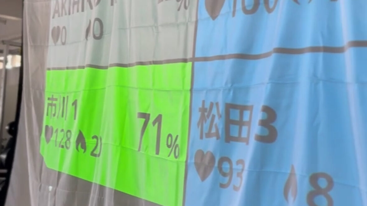 モニターに「本日の種目」が映ります。トレーナーがやり方をお伝えし、その後は自分のペースで運動できます。