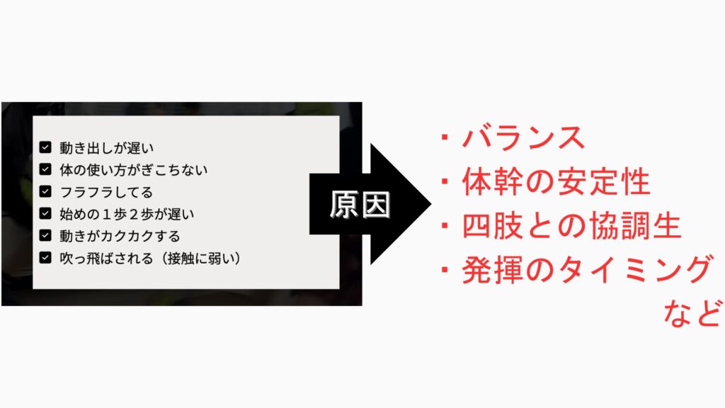 せっかく鍛えた体幹が、必要なタイミングで使えないと競技力には活きません。「体幹を強くする」トレーニングと「タイミングよく使う」トレーニング両方必要です。