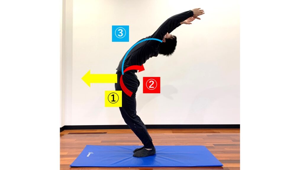 基本的なメカニズムは、前回の屈曲型(身体を前屈)と逆のメカニズムで考えていきます。