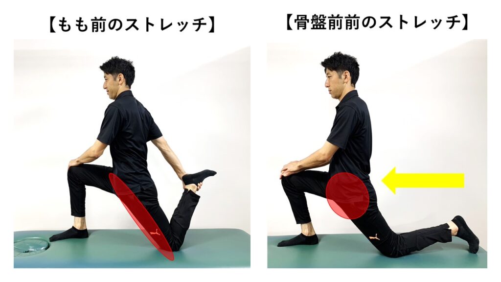 骨盤後傾を邪魔をする主な筋肉はももの前の筋肉と骨盤の前に付く筋肉になります。