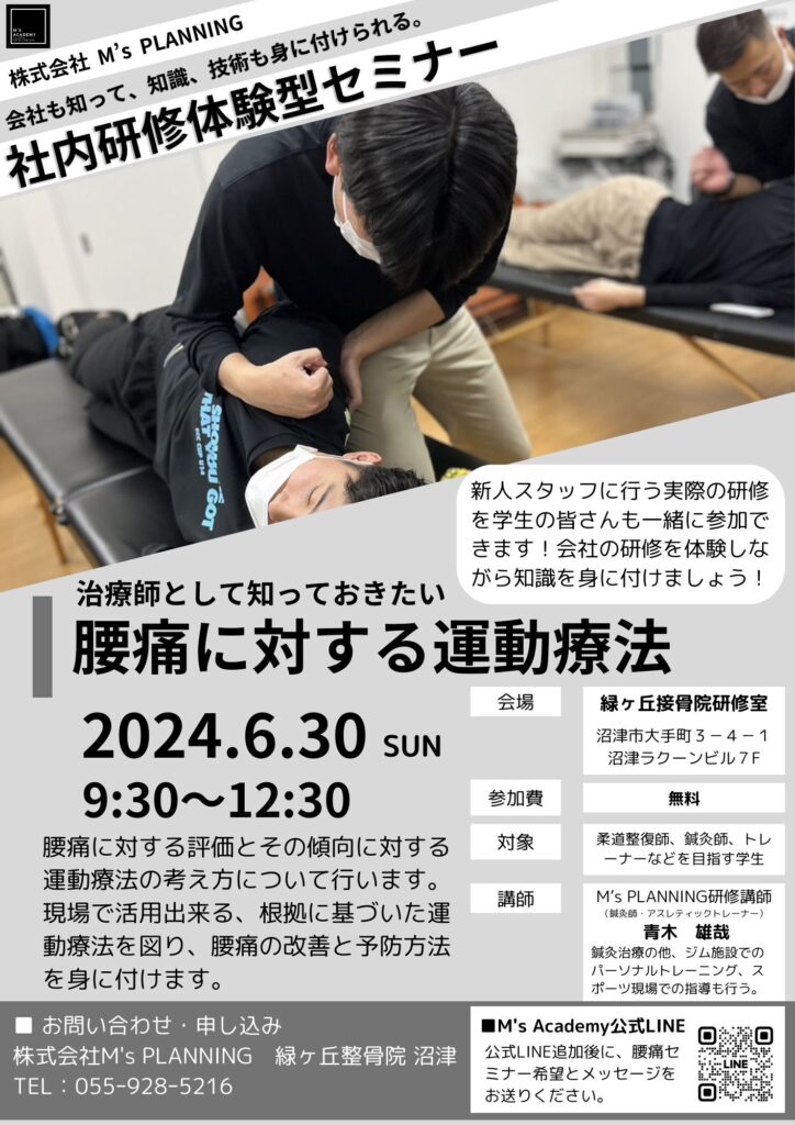 【セミナー開催】就職活動の一つに!企業研修体験型セミナー(腰痛の為の運動療法)を開催します!