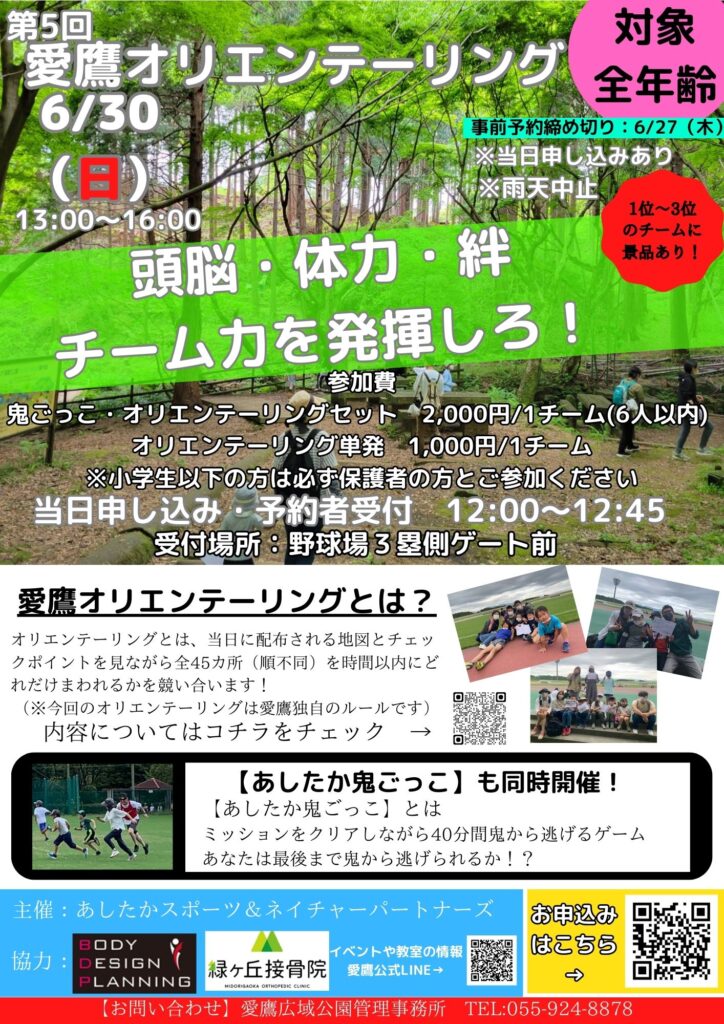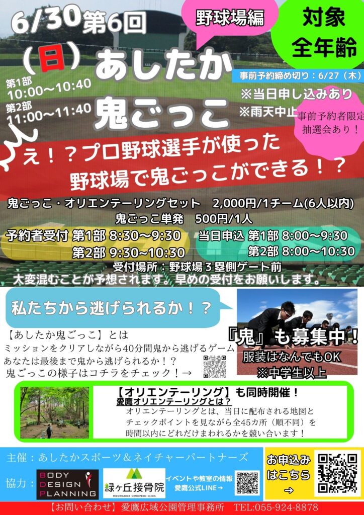 【大人気】あしたか鬼ごっこ&あしたかオリエンテーリングを開催します!
