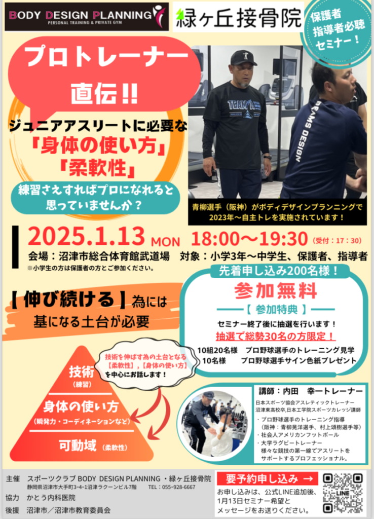 【無料セミナー】プロトレーナー直伝!ジュニアアスリートに必要な【柔軟性】と【身体の使い方】