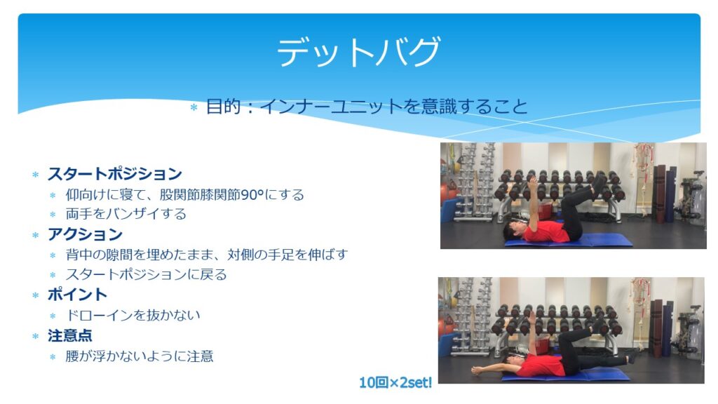 今回の体幹トレーニングを行うための順番を理解して頂くと下記の様な事を知っていただけます。