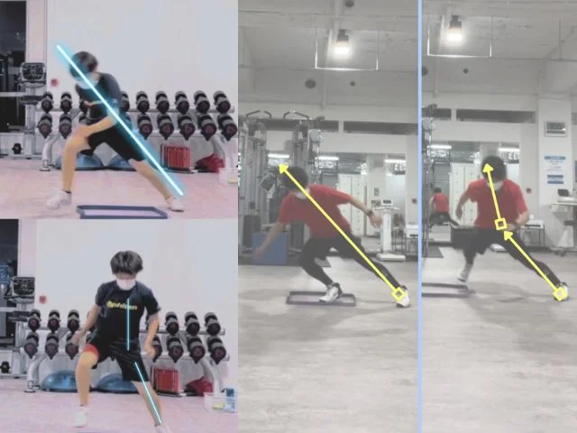 逆に、足から頭部まで一直線上で床から蹴れていれば、進みたい方向へ強く動き出すことが出来、進捗方向に体幹も向いている為、速く動くことも可能になります。