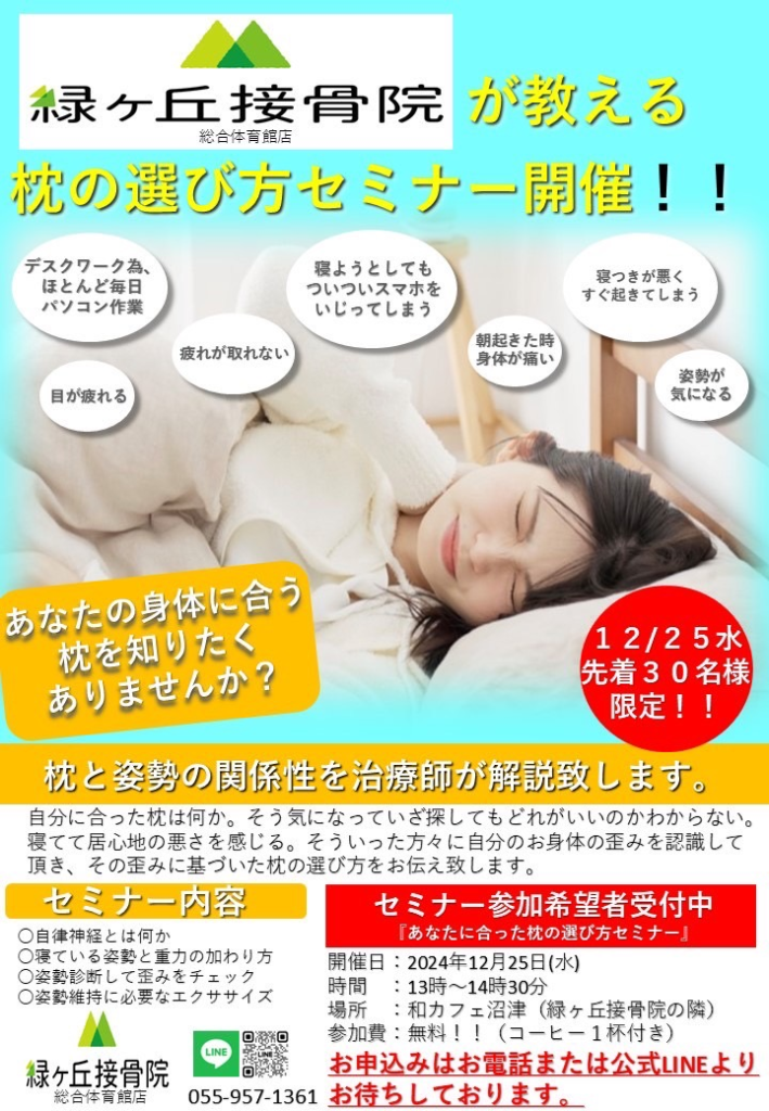 緑ヶ丘接骨院の治療師が教える枕の選び方セミナー開催‼️