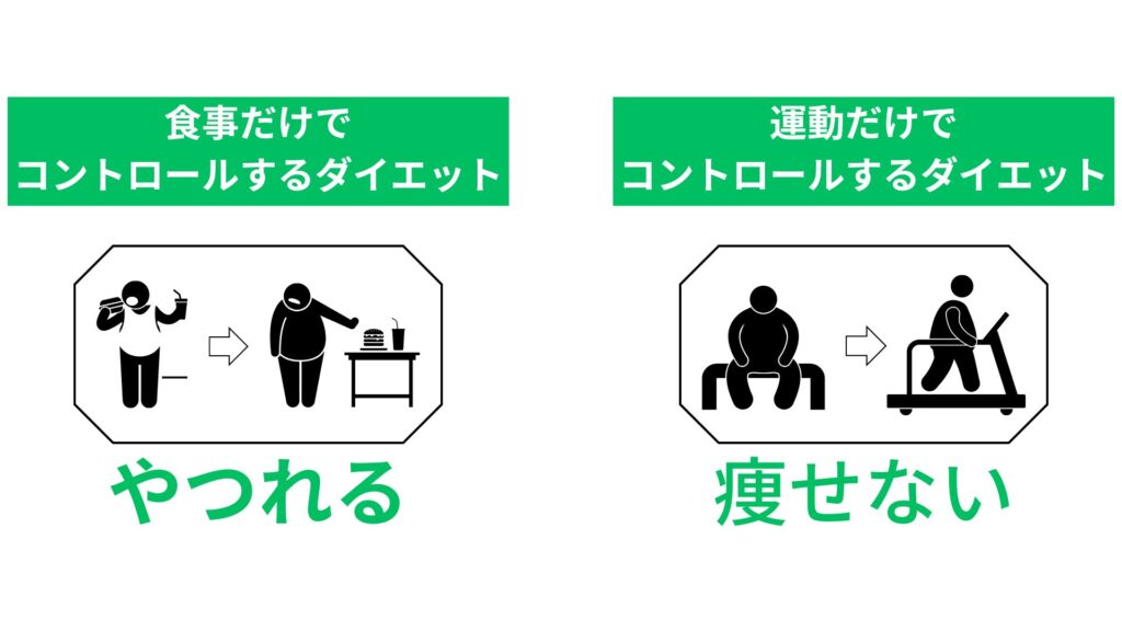 「食事だけ」「運動だけ」のダイエットは以下の通りになります。